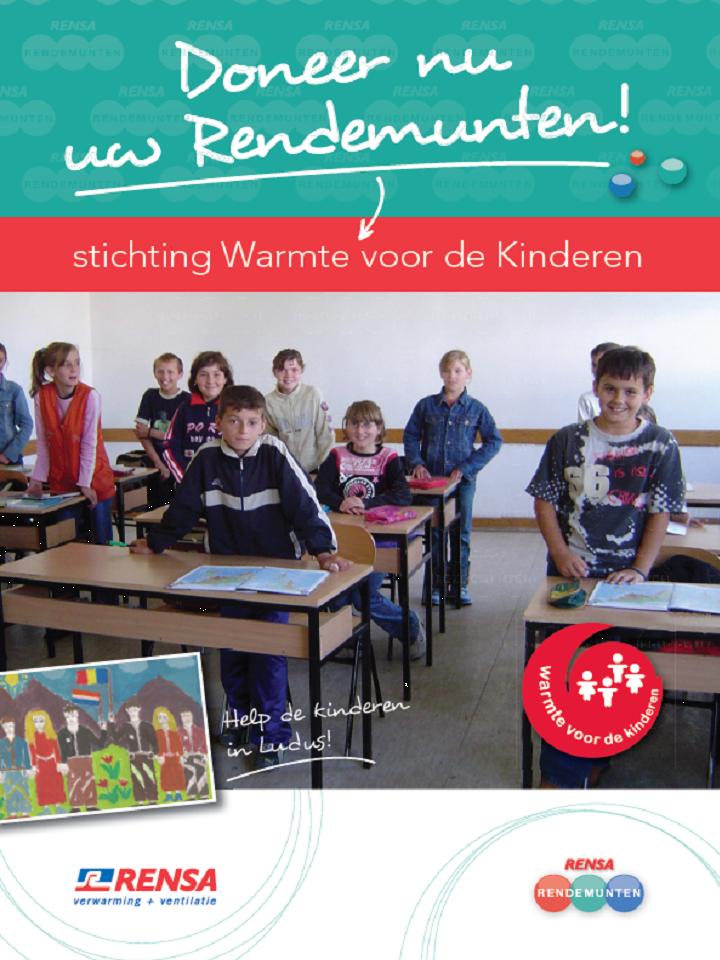Eind september zijn we gestart met een actie onder klanten van Rensa b.v.. We vragen ze om (een deel van) hun gespaarde rendemunten ter beschikking te stellen aan de stichting Warmte voor de Kinderen. Zodra we 200.000 rendemunten bij elkaar hebben kunnen we het project "Ludus" gaan realiseren.