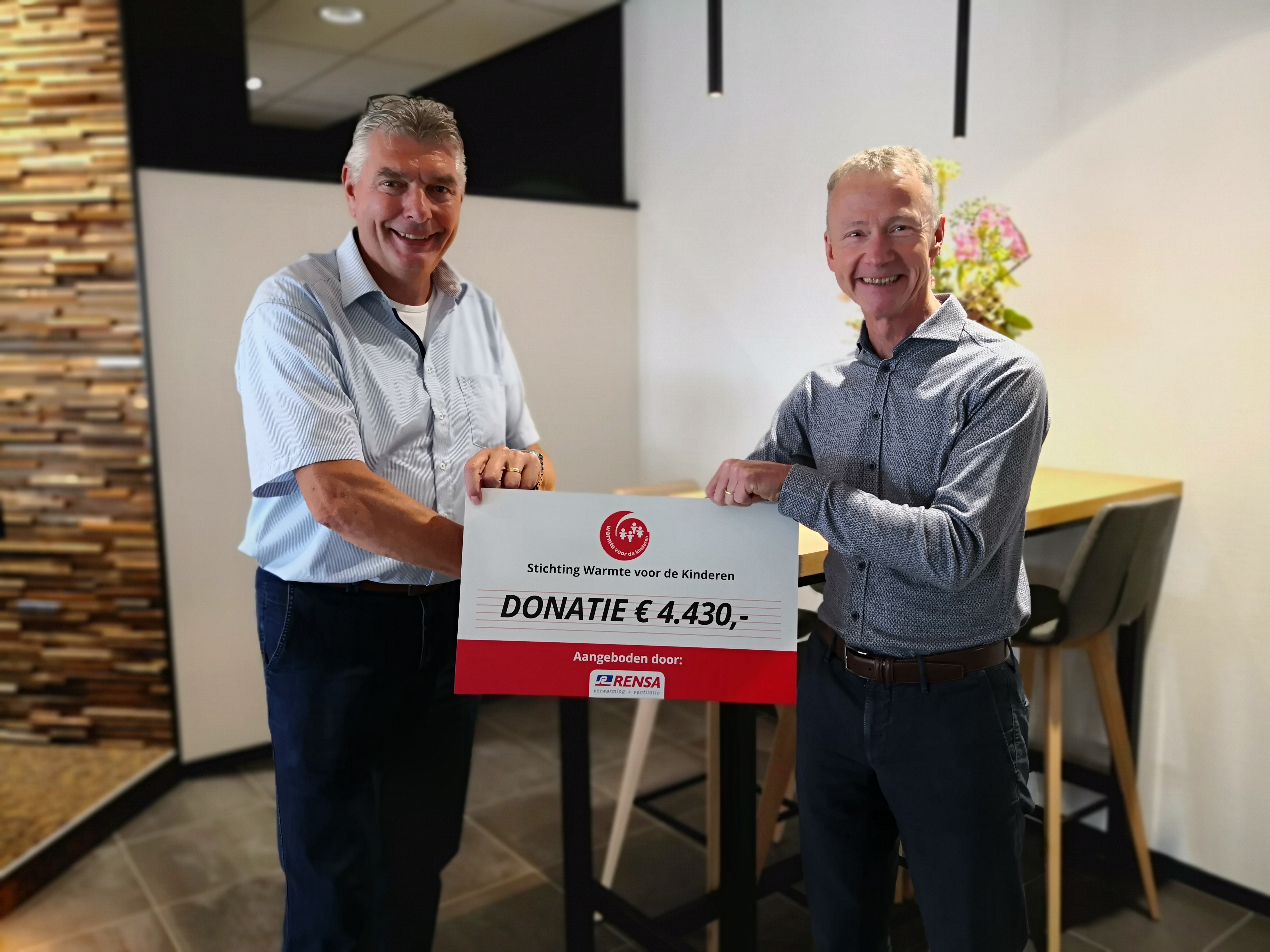 Toen de rendemuntenactie voor de Rensa klanten voorbij was, bleek dat er nog een flink aantal niet waren geclaimd. De tegenwaarde in geld t.w. 4.430 euro (!) , werd door directeur verkoop, Dennis Heijink, spontaan aangeboden aan de blij verraste voorzitter van stichting Warmte voor de Kinderen.