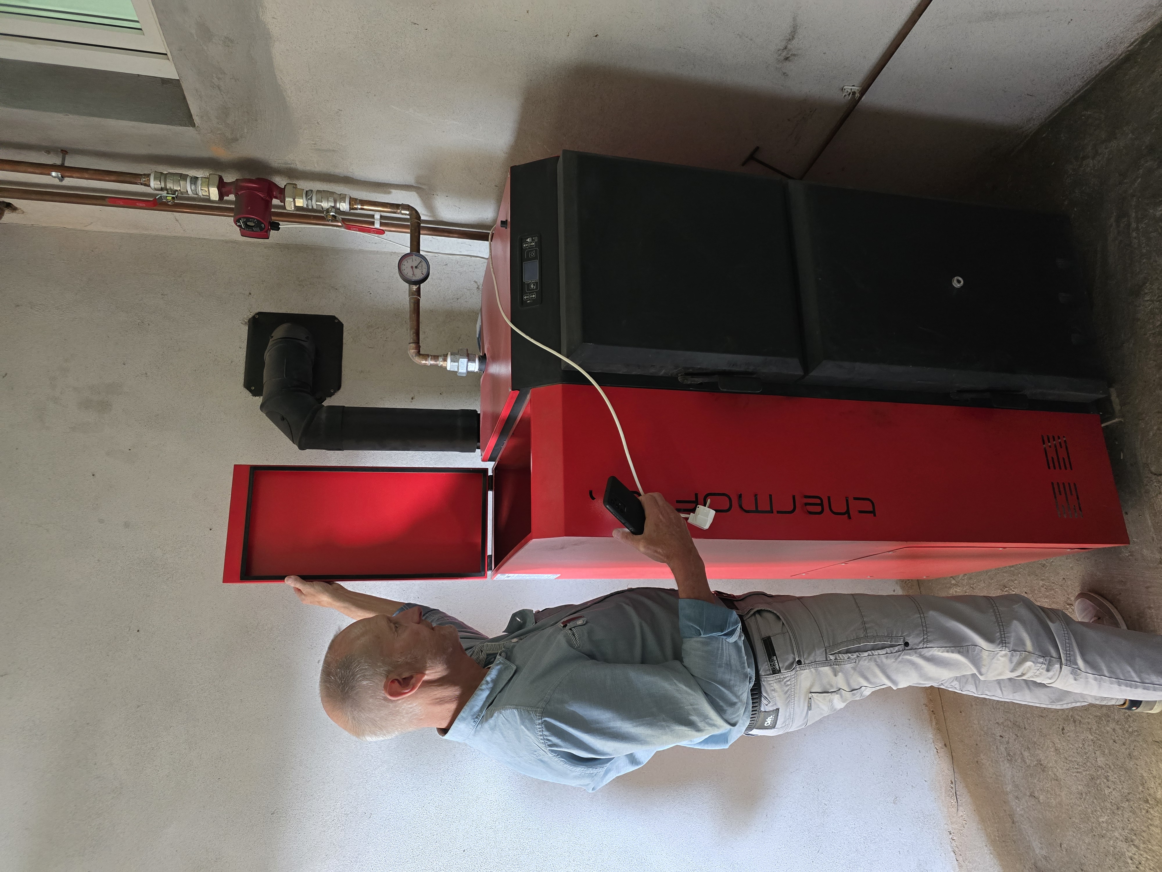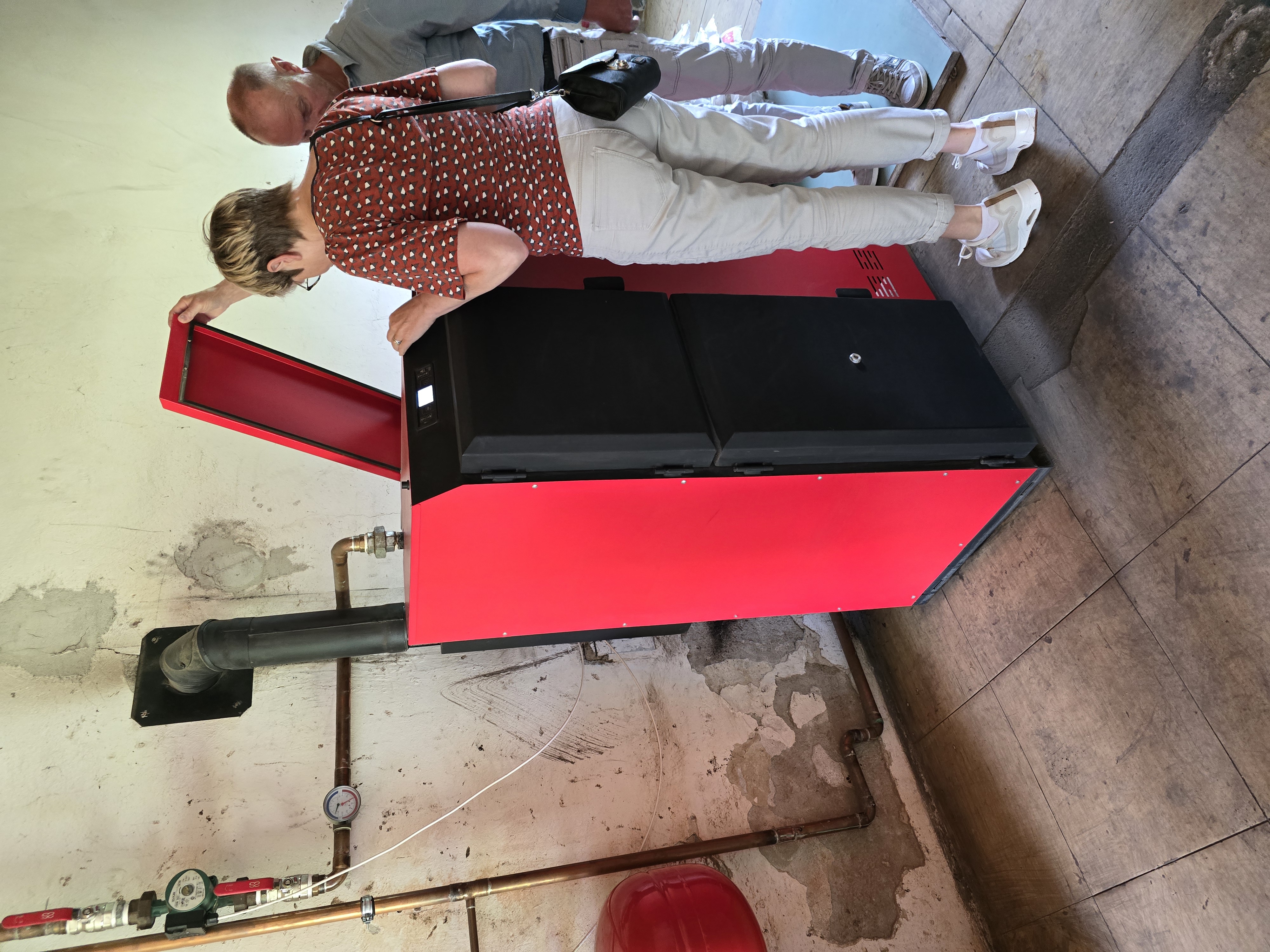 Vaso en Vencislav brengen ons naar een school in Cerovica, waar in 2018 een cv installatie gerealiseerd is d.m.v. van de stichting. Er is een ketel geplaatst die brandt op kolen. Ze willen daar graag een pelletketel installeren omdat die een schonere verbranding heeft. We krijgen wat te drinken aangeboden door een lerares. Er zijn geen leerlingen omdat die vandaag vrij zijn.