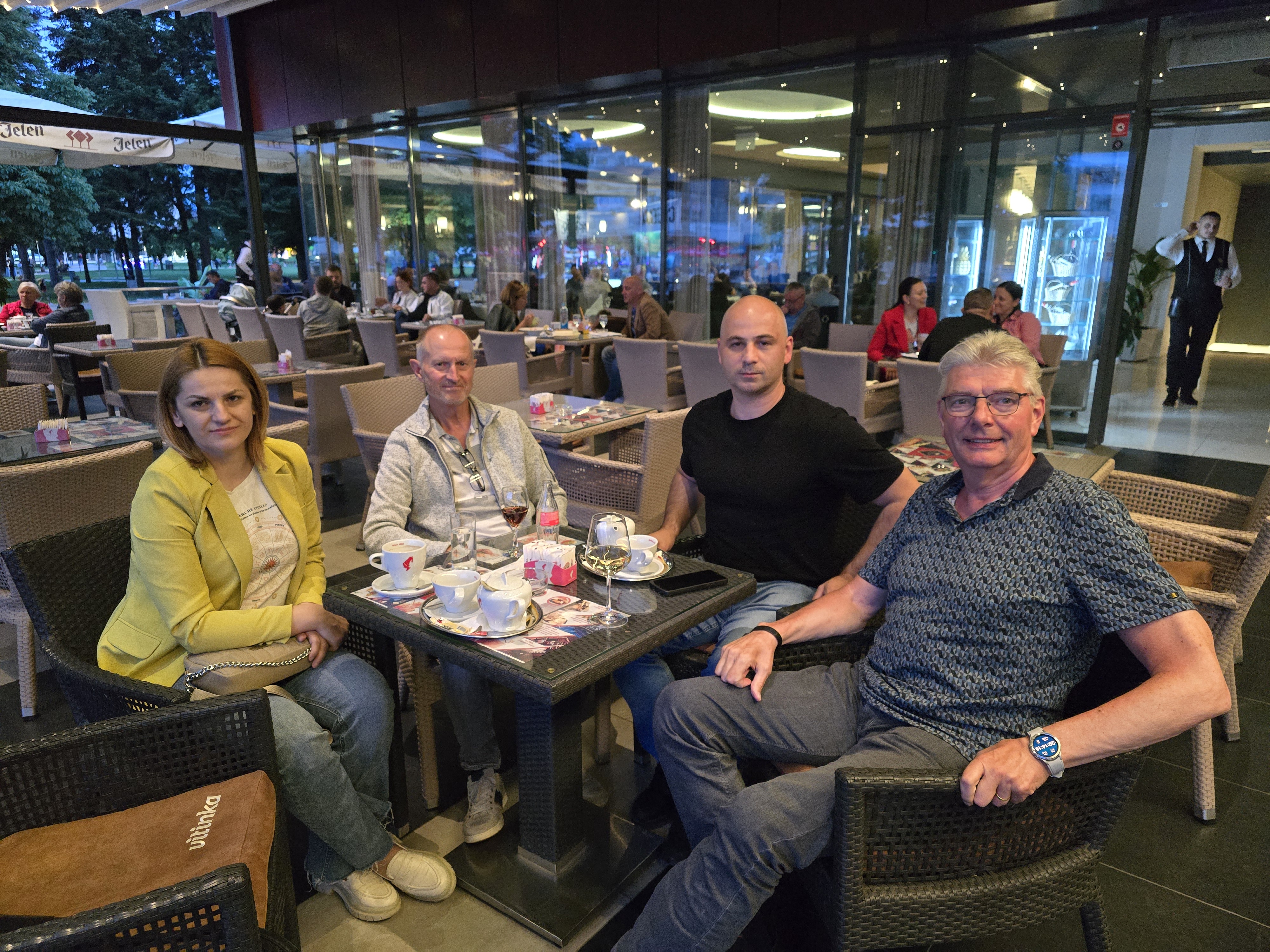 Daar werden we opgehaald door Aleksandar de directeur van de school in Jalanjska. Hij heeft ons naar het hotel gebracht in Doboj. Samen met Zorica, een collega van Aleksandar hebben we koffie gedronken op het terras van het hotel en hebben we het gehad over het bezoek aan hun school. Daarna hebben Willem, Hans en ik lekker gegeten in het hotel en heerlijk geslapen.