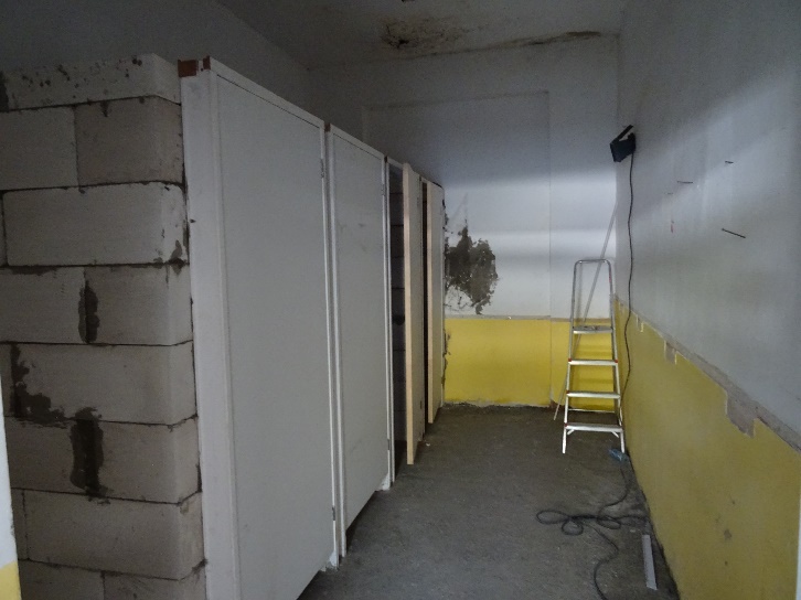 De toiletten op de rechterfoto zullen verder betegeld worden door de plaatselijke bevolking als het beton en de muren uitgehard zijn.