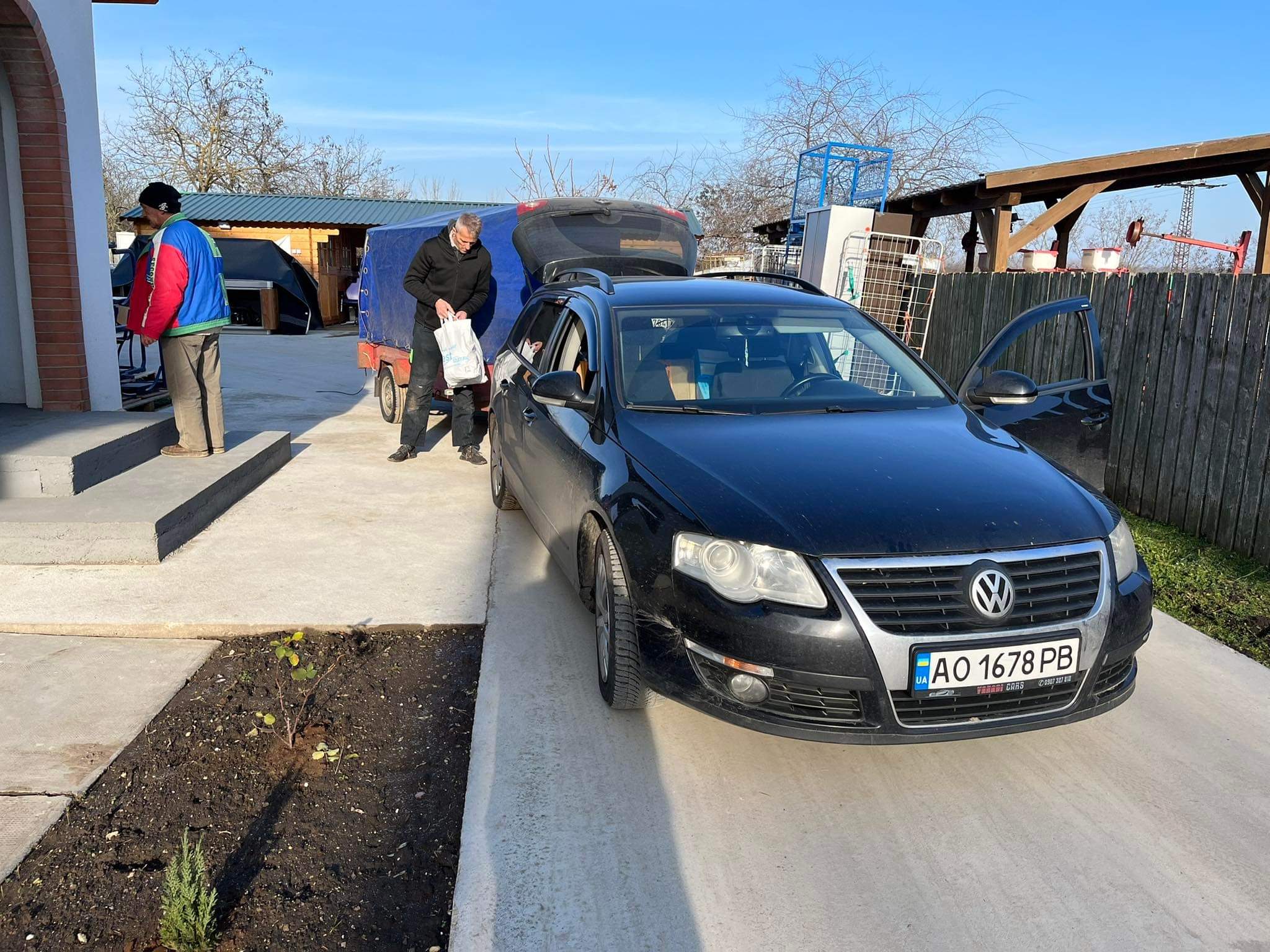 Er is op dit moment een grote behoefte aan bv. babyvoeding, en zo je op de foto ziet zijn er ook trays met babyvoeding geladen. De eerste serie foto`s zijn gemaakt bij het laden van de auto met aanhanger die de spullen naar Ukraïne brengt. We wachten nog op foto`s van het uitdelen, maar zodra deze binnen zijn sturen wij ze door.