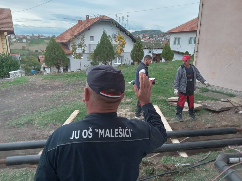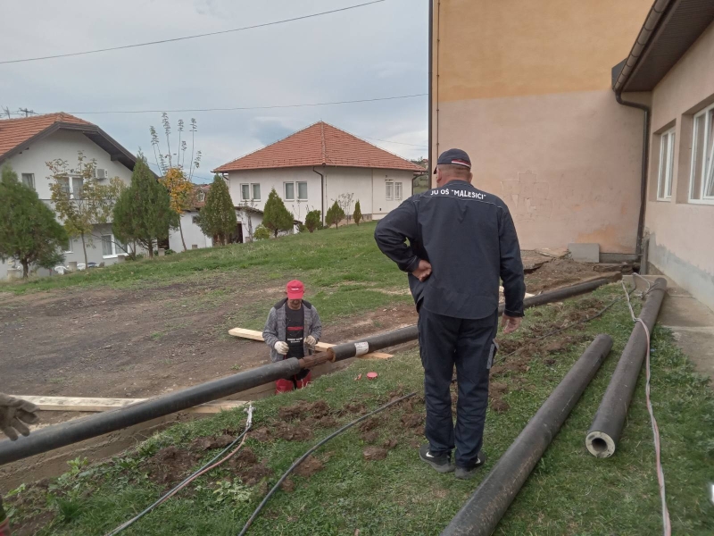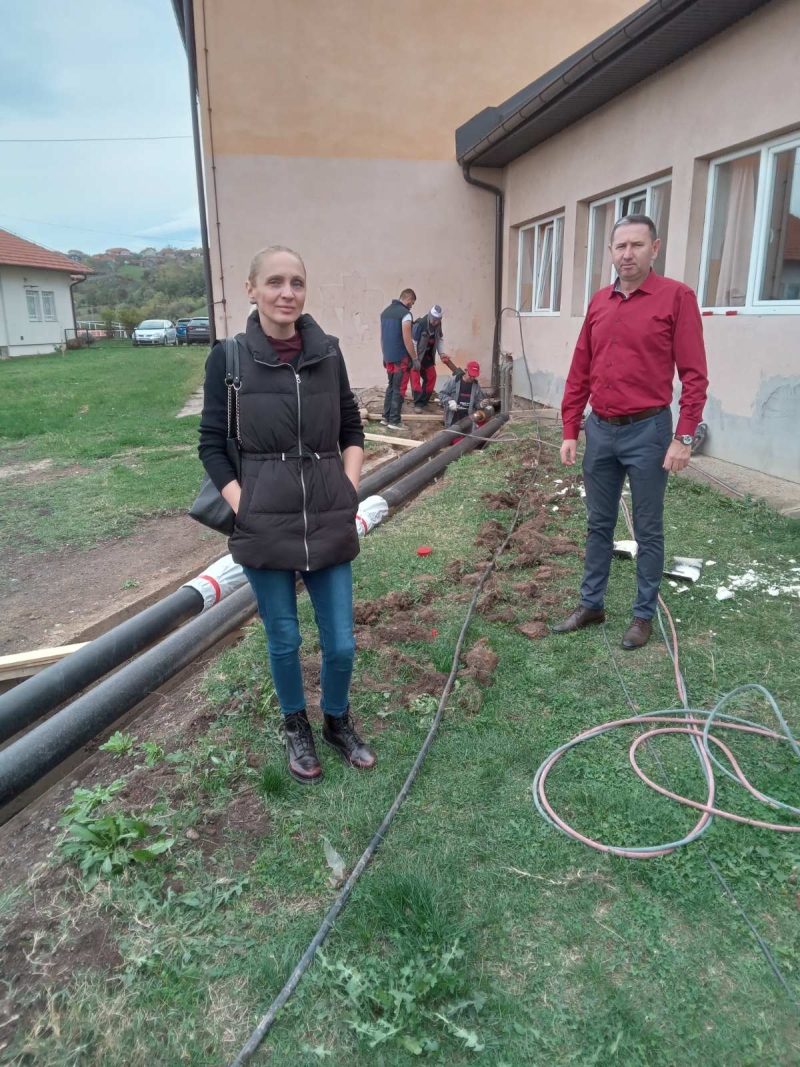 Indira en de directeur van de school in Malesici, de heer Mirsad Mujkic, zijn nogmaals met de lokale overheidsinstanties om tafel gaan zitten en hebben een garantie voor een deel van de kosten kunnen afdingen. Daarna bleef er voor ons nog een investering van ongeveer 3.500 euro over. We hebben ook dit project in het bestuur besproken en akkoord voor dit (derde) project gegeven. Door onze toezegging is ook de installateur akkoord gegaan met de opdracht en eind oktober zijn de werkzaamheden gestart! Gelukkig maar dat het weer in Bosnië ook nog steeds erg zacht is!