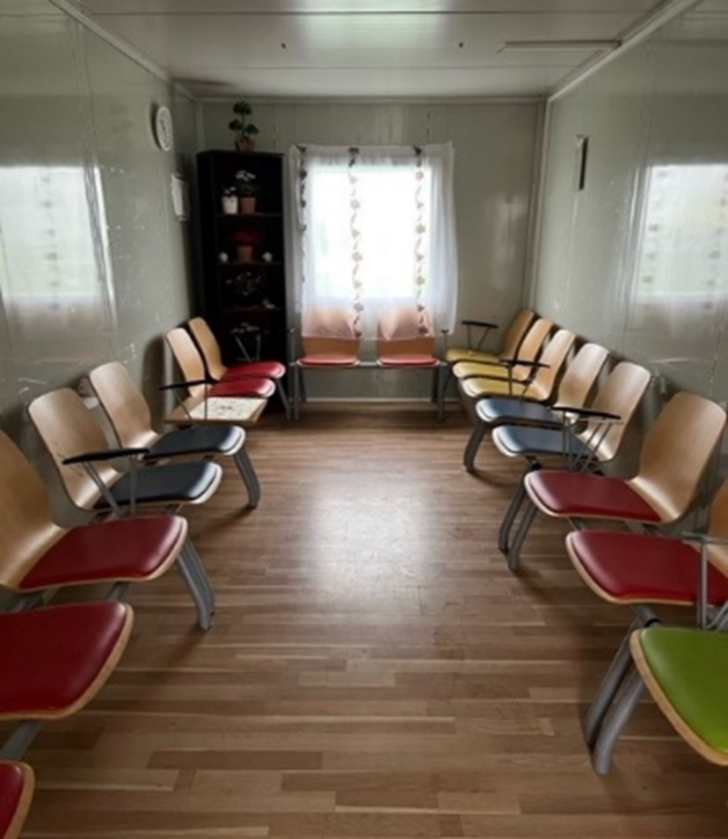 Hieronder het interieur van een van de oude containers, die gebruikt wordt voor het project Huiswerkbegeleiding.